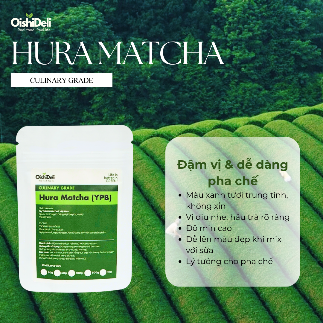 Matcha Hura – Vị trà rõ, bột mịn cao cấp, đa năng pha chế.