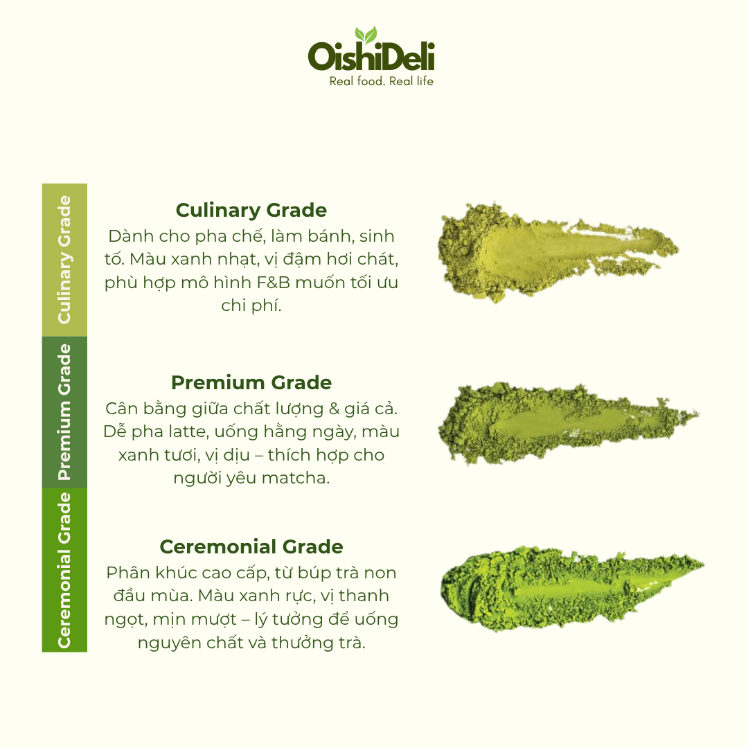 Hashtags: #oishideli #matchavuxuan #matchadacsachoanggia #matchaquychau #matcha #matchaharu